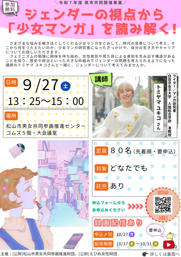【県市共同開催事業 公開講座】ジェンダーの視点から「少女マンガ」を読み解く!