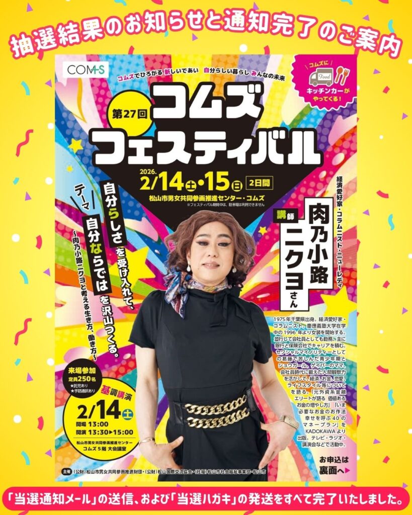 【第27回コムズフェスティバル】抽選結果のお知らせと通知完了のご案内